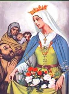 Trở thành hoàng hậu ỏ địa vị tôn quý, cao sang, ngài vẫn sống một cuộc sống bình dị như một dân thường, không kiểu cách, xa hoa. Còn hơn thế nữa, phát xuất từ lòng nhân ái chân tình, ngài thường đi lại thăm viếng, an ủi và giúp đỡ những người nghèo khổ. Ngài đặc biệt quan tâm chăm sóc các trẻ mồ côi, các thiếu nữ đơn độc và các bệnh nhân. Ngài thành lập nhiều cơ sở từ thiện: một bệnh viện ở Coimbra, một trung tâm hoàn lương ở Torres Novas, một cô nhi viện và nhiều nhà vãng lai. Ngài noi gương Chúa Giêsu, cứ mỗi thứ sáu Tuần Thánh hằng năm rửa chân cho 13 hành khất. Truyện các thánh kể có lần ngài rửa sạch, băng bó vết thương nơi chân một bệnh nhân rồi âu yếm hôn lên vết thương. Phép lạ xãy ra: vết thương nơi chân bệnh nhân bỗng dưng được chữa lành tức khắc. Ôi cao quý thay tấm lòng nhân ái, ôi tuyệt vời thay tinh thần phục vụ của một đương kim hoàng hậu! Truyện kể thêm rằng có lần vào một sáng mùa đông hoàng hậu giấu các vật cứu trợ trong áo định đi thăm người nghèo thì bị chồng bắt gặp, tra hỏi giận dữ đến đỗi ngài không dám trả lời. Nhà vua nắm áo hoàng hậu giật mạnh thì chỉ thấy những cánh hoa hồng!