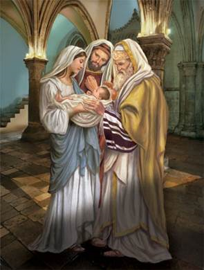 Hôm nay Giáo Hội mừng kính lễ Đức Maria dâng Chúa Giêsu trong Đền Thờ. Một Hài Nhi bé nhỏ đã được các cụ già đón nhận một cách rất thành kính. Ngay khi vừa lọt lòng mẹ, Chúa Hài Nhi đã được các thiên thần tung hô, các mục đồng đến viếng thăm và từ xa, các nhà Đạo Sĩ đã đến tôn thờ và dâng lễ vật. Theo luật Môisen cũng là tục lệ của người Do thái, những người con trai được sinh ra, nhất là con đầu lòng, sau 40 ngày, bà mẹ phải đưa đến Đền thờ, trước là dâng con cho Chúa, sau là chính mình làm lễ tẩy uế: Khi ấy, đủ ngày thanh tẩy theo luật Môsê, cha mẹ Chúa Giêsu liền đem Người lên Giêrusalem để hiến dâng cho Chúa (Lc 2, 22). Dù Đức Maria và ông Giuse biết rằng trẻ Giêsu là Con Thiên Chúa. Các ngài đã chu toàn mọi lề luật: Như đã chép trong Lề luật Chúa rằng: “Mọi con trai đầu lòng sẽ được gọi là người thánh thuộc về Chúa” (Lc 2, 23). Dâng con trong đền thờ là để thánh hiến người con cho Thiên Chúa và cha mẹ có thể thế chân bằng cách dâng cúng của lễ như chim bồ câu hay chiên bò.