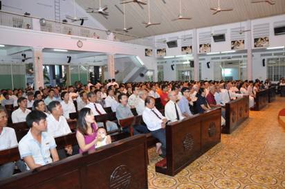 Tôi bước vào bên trong nhà thờ, bắt đầu hiệp thông với cộng đoàn dân Chúa đọc kinh, lần hạt lúc 5 giờ và tham dự thánh lễ lúc 5g30. Cộng đoàn dân Chúa mỗi chiều đến nhà thờ giáo xứ Nhân Hòa cũng đủ mọi lứa tuổi. Họ tìm đến đây, nghiêm trang quây quần trước bàn thờ Chúa, trước hình tượng Mẹ Maria và Thánh Cả Giuse để cầu nguyện qua lời kinh, tiếng hát. Họ hân hoan cùng nhau tham dự vào bàn Tiệc Thánh,  cùng nhau chia sẻ Bánh Thánh giúp họ thoải mái tâm tư đời này và hạnh phúc viên mãn đời sau. Họ đến đây để lắng nghe lời Chúa, bởi họ tin lời Chúa dạy: “Người ta sống không chỉ nhờ cơm bánh, nhưng còn nhờ mọi lời miệng Thiên Chúa phán ra” (Mt 4,4).