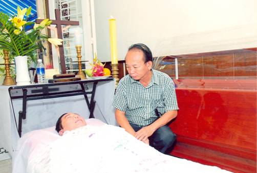 Những tháng sau này bệnh tình anh nghiêm trọng, những con virus ăn mòn dần hai lá phổi, thuốc men điều trị chỉ còn cầm chừng, giúp anh kéo dài sự sống được ngày nào hay ngày đó. Anh nhập viện dày hơn. Sức khỏe tàn tạ, anh không đủ sức đến nhà thờ như mỗi lần xuất viện trước đây. Mấy lần mấp mó trước lưởi hái tử thần, anh được cha sở Nhân Hòa ban truyền Bí tích Xức Dầu như là Thánh dược giúp anh chống chọi, xua tan các tà khí của ác thần ma quỷ. Một lần tôi đến nhà thăm, anh bày tỏ khao khát được chịu Mình Thánh Chúa mỗi ngày. Tôi gọi điện báo anh Gioan Baotixita Hồ Tứ Đức, trưởng giáo khu 3, nhờ thừa tác viên rước Thánh Thể đến cho anh. Trước đó khoảng hai tuần cùng anh trưởng Đạo Binh Đức Mẹ giáo xứ Nhân Hòa đến bệnh viện Thống Nhất thăm anh, tôi thấy anh vẫn sáng suốt chuyện trò chuyện đời, chuyện đạo. Và vẫn là câu nói cửa miệng: “Mọi sự anh xin phó dâng cho Chúa và Mẹ Maria”.