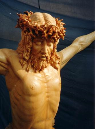 Từng nhát đục ông gọt đẽo trong hồn ông, tượng hình dần trên thân gỗ. Gương mặt Chúa Giê-Su đau đớn với đôi mắt mở lớn đang ngước lên trời trong tâm tình phó thác vâng phục. Phải rồi, Người đã vâng phục cho đến chết và chết trên Thập Giá đang khi Người uy quyền phép tắc đến thế! Ai làm gì được Người nếu không phải chính Người tự nguyện chết thay cho nhân loại? Gương mặt Chúa Giê-Su thánh thiện và khả ái làm ông hài lòng mặc dù mấy hôm nay một cơn đau cứ nhoi nhói trong ngực ông.