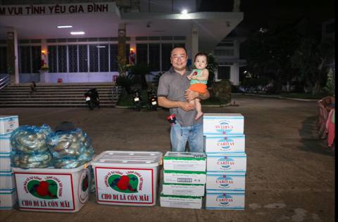 Mỗi chuyến đi đến với những mảnh đời bất hạnh, các thiện nguyện viên của nhóm BVSS: LCXT trao 1.200 phần thức ăn và thức uống, bao gồm 1.200 nước uống đóng chai nhãn hiệu CARITAS Saigon. Hẳn Caritas TGP Sài Gòn là một tổ chức bác ái xã hội Công Giáo uy tín nên việc Nhóm BVSS: LCXT chọn sản phẩm của tổ chức này là điều hợp lẽ.