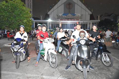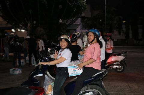 Sau năm mười phút hỏi han, giới thiệu cũ mới, mọi người trang nghiêm hướng về tòa Đức Mẹ sốt sắng đọc kinh cầu nguyện cho mỗi việc từ khởi sự cho đến hoàn thành đều nhờ bởi ơn Chúa. Mỗi lần đi có khoảng 100 thành viên và cộng tác viên của nhóm chia thành bảy team chở các thùng và bao bị đựng thức ăn uống trên xe máy, chạy rảo quanh các đường phố Sài Gòn, tìm gặp, hỏi han, an ủi và trao các phần quà ăn đêm và ăn sáng cho những người nghèo khổ đang lang thang kiếm sống hoặc đang thiếp ngủ trên các vỉa hè. Hầu hết họ vô gia cư, tự nuôi thân bằng các nghề bán vé số dạo, lượm ve chai, khất thực…