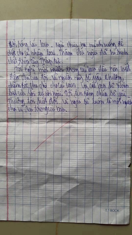 Cảm tạ Chúa đã cho em sự khôn ngoan. Bài kiểm tra 90 phút của em như một bài làm chứng dành cho giáo viên và các bạn của mình. Nội dung bài có thể bị nhiều người cho rằng lạc đề và còn một số lỗi chính tả, điểm số giáo viên cho chỉ là 5đ nhưng trong mắt Chúa, dám chắc rằng em học sinh này đã đạt điểm 10 tuyệt đối.