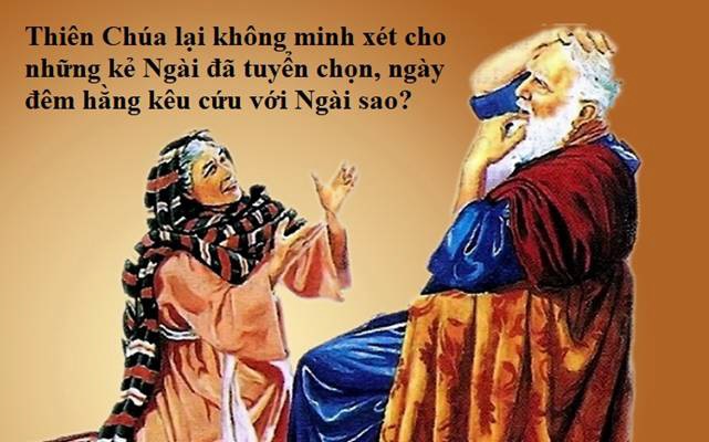 Đoạn văn Tin mừng này là câu chuyện dụ ngôn về một người góa phụ bền bỉ. Bà liên tục đến gặp một thẩm phán vốn không quan tâm đến việc làm điều đúng đắn, và bà dai dẳng yêu cầu ông ta xử cho bà một bản án công bằng. Cuối cùng ông ta cũng nhượng bộ vì không muốn bà quấy rầy ông ta nữa: “kẻo mụ ấy cứ đến hoài, làm ta nhức đầu nhức óc” (Lc18: 5).