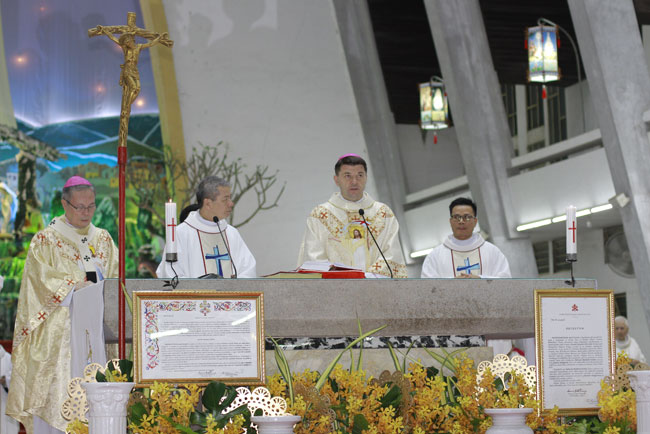 Mở đầu Thánh lễ, Cha Tổng Đại diện Antôn Dương Quỳnh công bố Sắc lệnh của Tòa Ân giải Tối cao ban Phép lành Tòa Thánh cho Giáo phận nhân dịp Năm Thánh này. Kế tiếp, Đức TGM Giuse Nguyễn Chí Linh, Tổng Giám mục Huế, Chủ tịch Hội Đồng Giám Mục Việt Nam trong tư cách là chủ nhà giới thiệu quý Đức Cha và quý Cha hiện diện trong Thánh lễ, đồng thời Ngài cũng tuyên bố Khai Mạc Năm Thánh mừng kỷ niệm 170 năm thành lập Tổng Giáo phận Huế.
