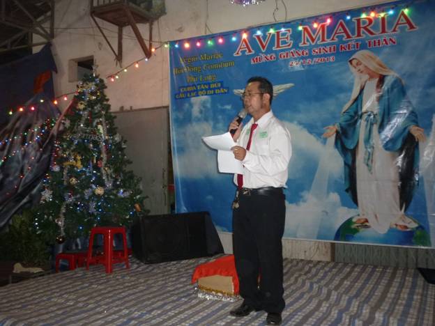 Ban tổ chức lần lượt mời các cấp HĐ Senatus, Comitium Phú Long, Curia Tân Bùi lên chia sẻ. Sau khi đại diện của các anh chị em công nhân phát biểu cảm tưởng và nói lên lời cám ơn. Anh trưởng ban Di Dân Bùi Chu đã trình bày khái quát về sự hình thành cũng như những hoạt động của CLB trong thời gian một năm qua, nhờ ơn Chúa và Đức Mẹ đã gặt hái được nhiều thành quả đáng khích lệ. Để mở đầu cho phần văn nghệ hứa hẹn rất nhiều hào hứng đêm nay là Hoạt Cảnh Giáng Sinh do các em Junior trong pré. Đức Mẹ Mân Côi đảm trách. Cứ sau mỗi tiết mục là phần rút thăm trúng thưởng. Phải công nhận các anh chị Curia Tân Bùi đã bỏ rất nhiều tâm huyết, công sức để dàn dựng tập tành thật là công phu. Có đầy đủ cả hợp ca, song ca, múa, biểu diễn thời trang v.v… Ngoài những bài hát Noel có tính truyền thống như Cao Cung Lên, Hang Belem….còn có những bài được các bạn trẻ ưa chuộng như Hai Mùa Noel, Tình người ngoại đạo, Bài Thánh Ca Buồn….được các anh chị em công nhân đóng góp rất chất lượng không thua gì những ca sĩ nghiệp dư. Đặc biệt nhất là tiết mục biểu diễn của Nhóm Đức Mẹ Có Lòng Khoan Nhân do các anh chị em người dân tộc hát bằng tiếng Ba Na hợp xướng. Theo sự dò hỏi của tôi thì các anh chị là người Công giáo và hiện đang là công nhân tại khu công nghiệp Sông Mây. Điều này chứng tỏ tính chất đa dạng của CLB Di Dân Bùi Chu, các anh chị đã quy tụ được những con người của khắp mọi miền đất nước. Chính sự quy tụ ấy đã mang một ý nghĩa hết sức to lớn, thật xứng đáng với lời chúc tụng của các thiên thần trong Đêm Cực Thánh “ Vinh Danh Thiên Chúa trên trời. Bình an dưới thế cho người thiện tâm”.